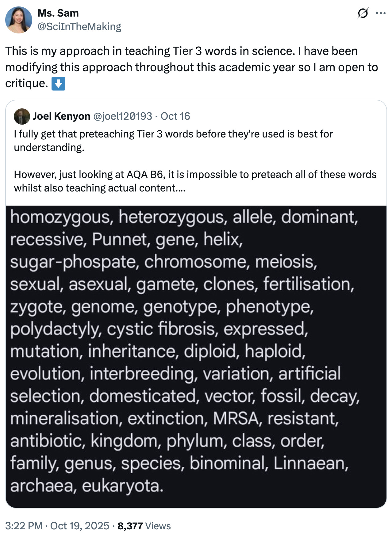 Teaching Tier 3 Words in Science—thread on Twitter/X